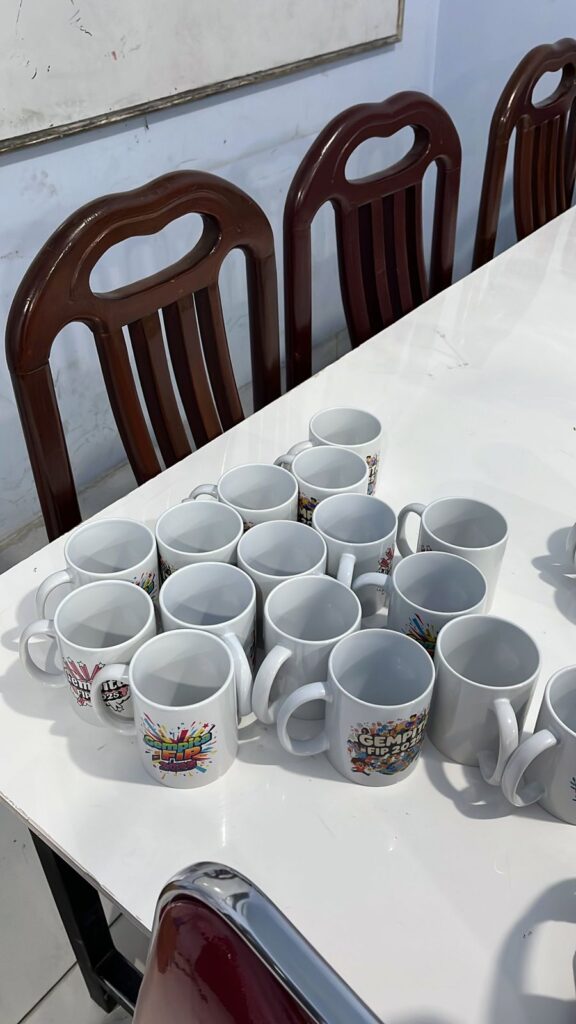 Jasa sablon dan cetak mug, gelas, serta tumbler sebagai media promosi, hadiah, atau souvenir
