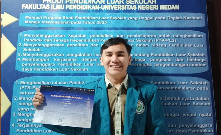 Mahasiswa Program Studi Pendidikan Masyarakat Fakultas Ilmu Pendidikan (FIP) Universitas Negeri Medan, Ewi Darman Ndraha, berhasil menorehkan prestasi membanggakan dengan meraih Juara III Lomba Menulis Esai Tingkat Nasional. Kegiatan ini mengusung tema “Bangun Semangat Menuju Peradaban Baru Bersama Pendidikan Nonformal” dan diselenggarakan dalam rangka Dies Natalis ke-42 Jurusan Pendidikan Nonformal Universitas Negeri Padang, pada tanggal 14–18 November 2023.
